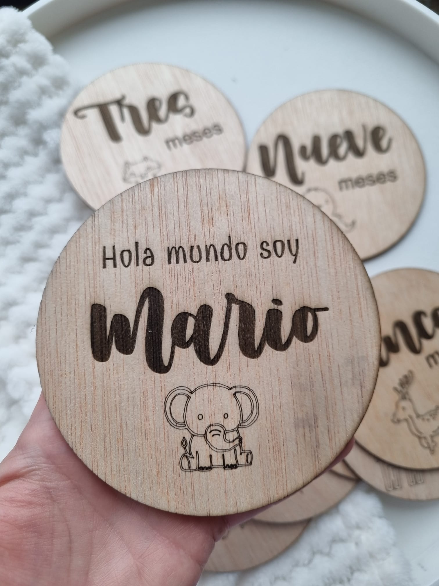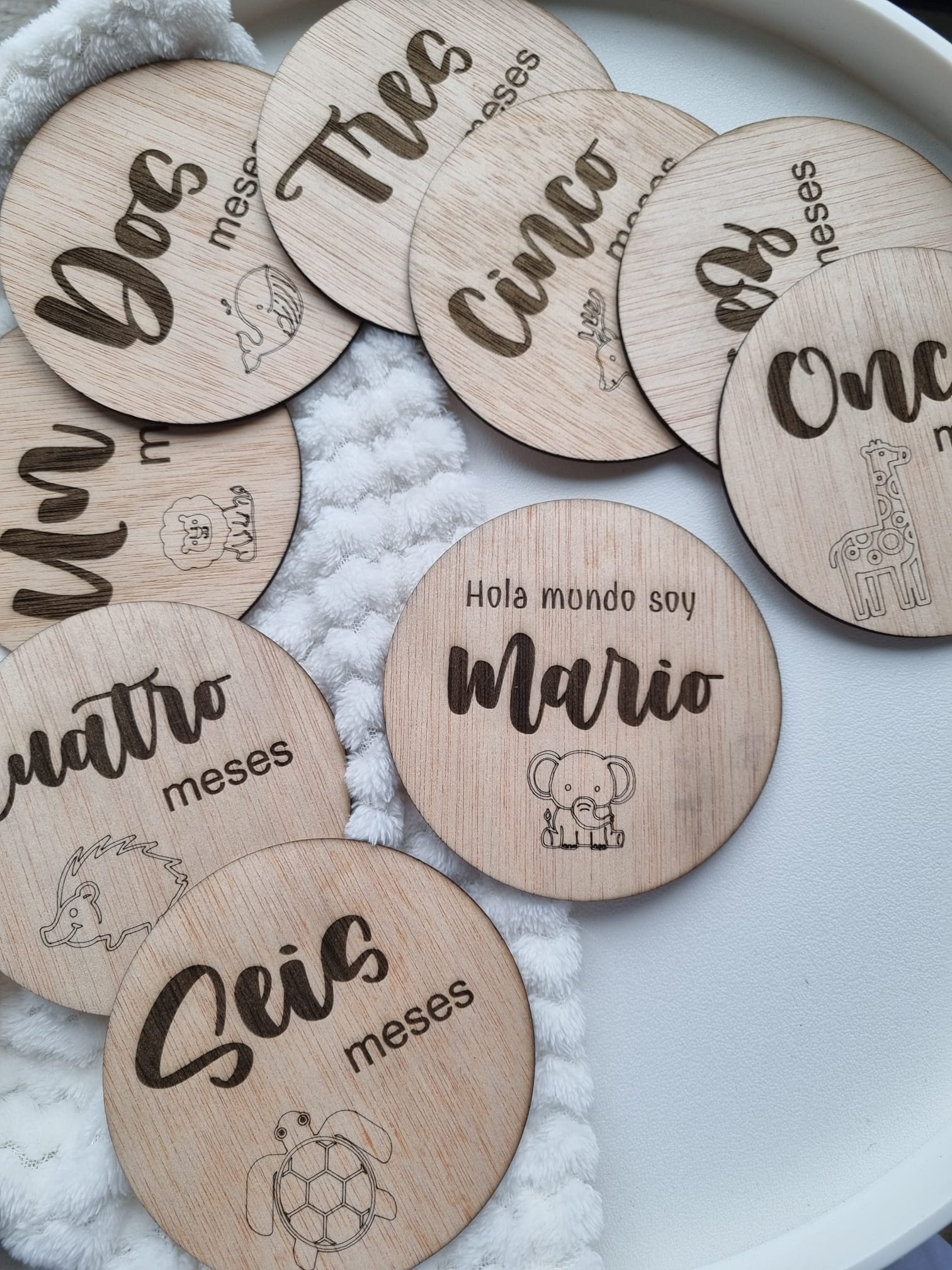 Placa Hola mundo con nombre de bebé mas 12 con los meses