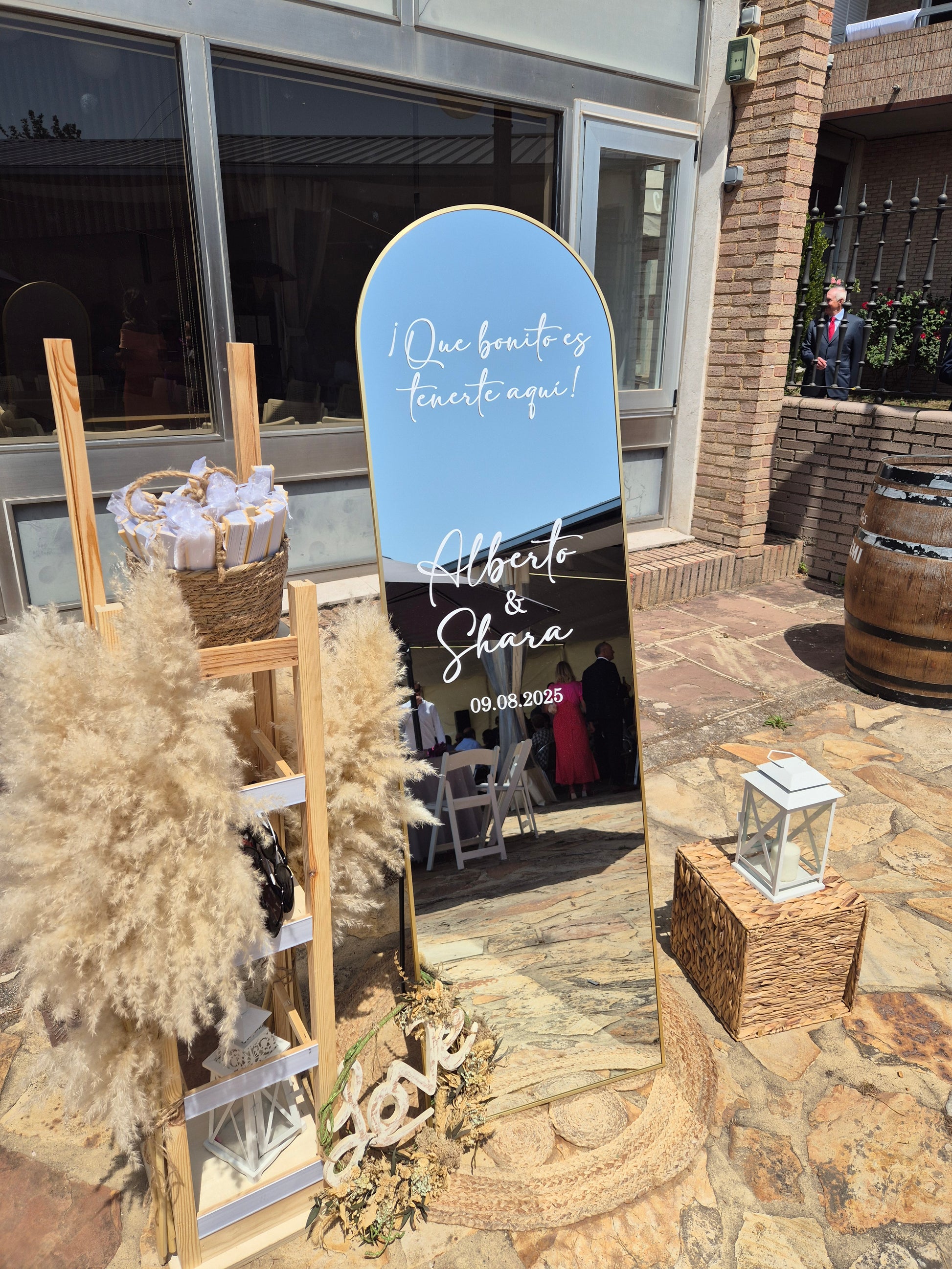 Vinilo decorativo para espejo, ideal para dar la bienvenida, indicar espacios o añadir un mensaje especial a tu celebración. Un complemento elegante y personalizable que transforma cualquier espejo en un elemento protagonista. No incluye el espejo, solo el vinilo para su colocación.